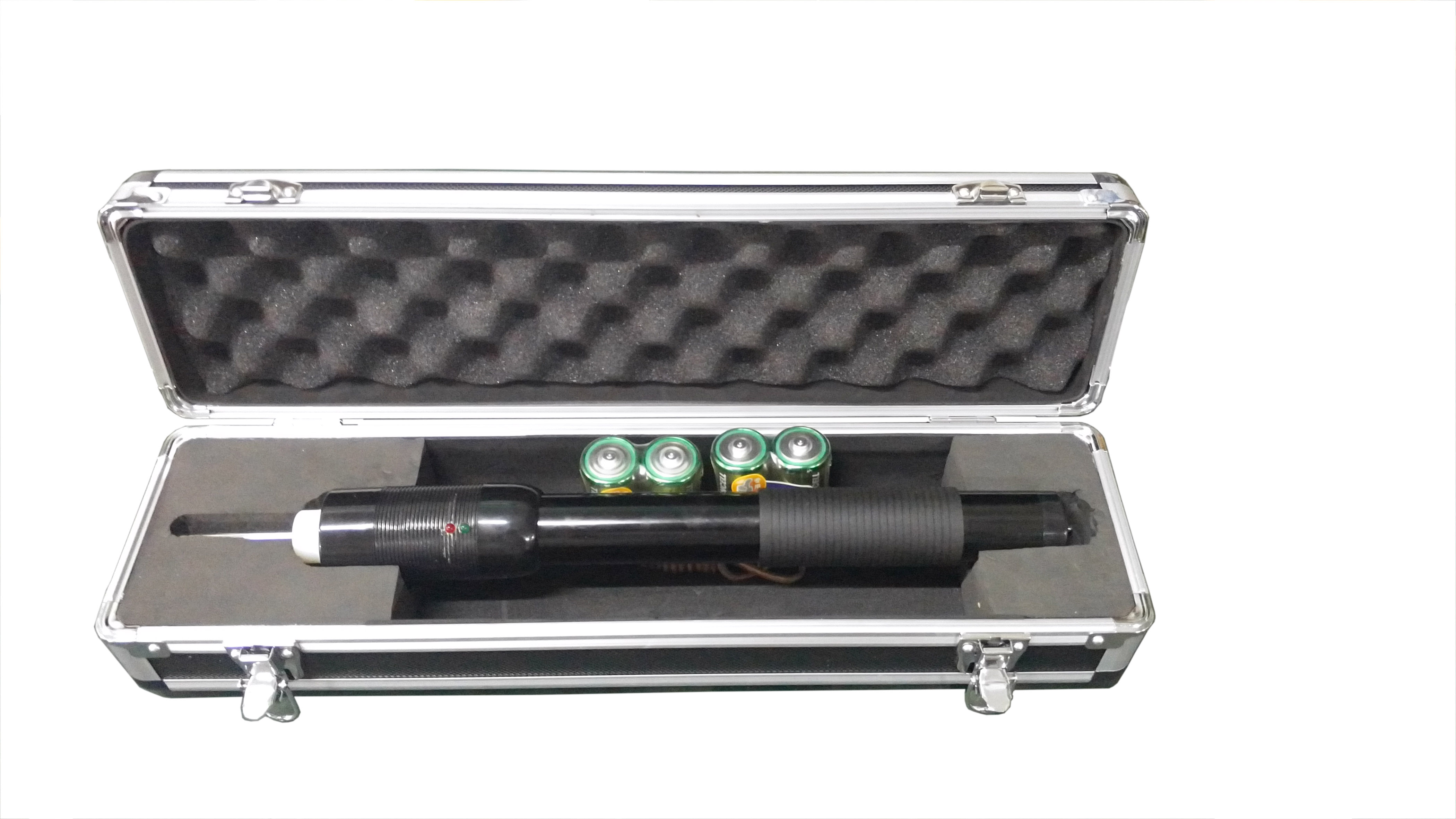 5、每次點擊后,放電桿端頭應離開計數器。若需重復測試,不要松開按鈕,待1-2秒指示燈又閃爍時,既可再次點擊測試。