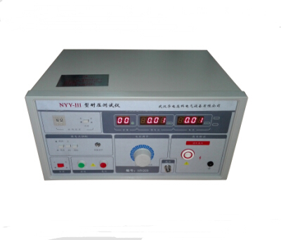 耐電壓測試儀適用于各種電機、電器、儀器儀表和家用電器,以及強電系統的安全耐壓和漏電流的測試。該儀器操作方便,安全可靠,性能良好,維修方便。 是符合 GB4706.1《家用和類似用途電器安全通用要求》和 GB9706.1《醫用電氣安全通用要求》及 GB4943、GB4793等國家標準中相關條款的試驗要求所需的測試設備。本儀器貫徹 Q/TPGG 2 NYY系列耐電壓絕緣電阻測試儀企業標準、Q/TPGG 6  NYY-III型耐電壓測試儀企業標準。