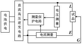 搖表有三個接線端子:線路端子(L),接地端子(E),屏蔽(或保護)端子(G),被試品接在L和E之間,G用以消除絕緣試品表面泄漏電流的影響,其試驗原理接線如圖1-3所示。