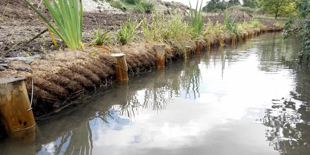 木板是砍伐的硬木材,不會發芽而且比較耐久,能夠發揮對邊岸的保護作用。